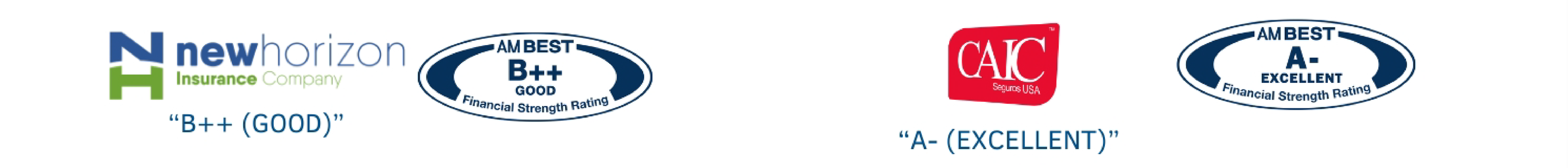 New Horizon Insurance Company holds a financial strength rating of B++ (Good). Likewise, CAIC Seguros USA also holds an A- (Excellent) rating, both awarded by AM Best, the world's largest credit rating agency specializing in the insurance industry.